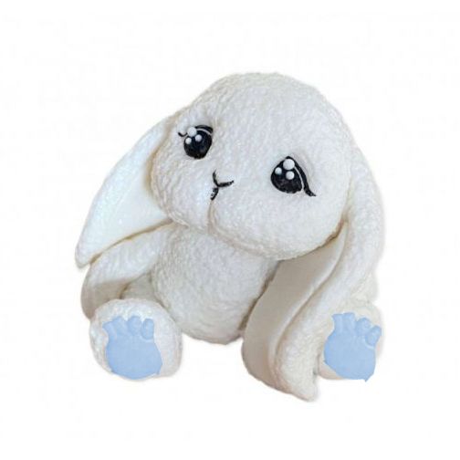 Figur aus Kuchen in Form eines Zuckerhasen mit blauen Pfoten. Eine schöne Dekoration für Ihr Zuhause, Fensterbrett, Minigarten oder die Geburtstagstorte. Ideal für einen winzigen Märchengarten, Ihre Heimdekoration, Ihren kleinen Blumentopf oder jeden anderen Ort, den Sie schmücken möchten. Die Höhe des Häschens beträgt 8 cm.