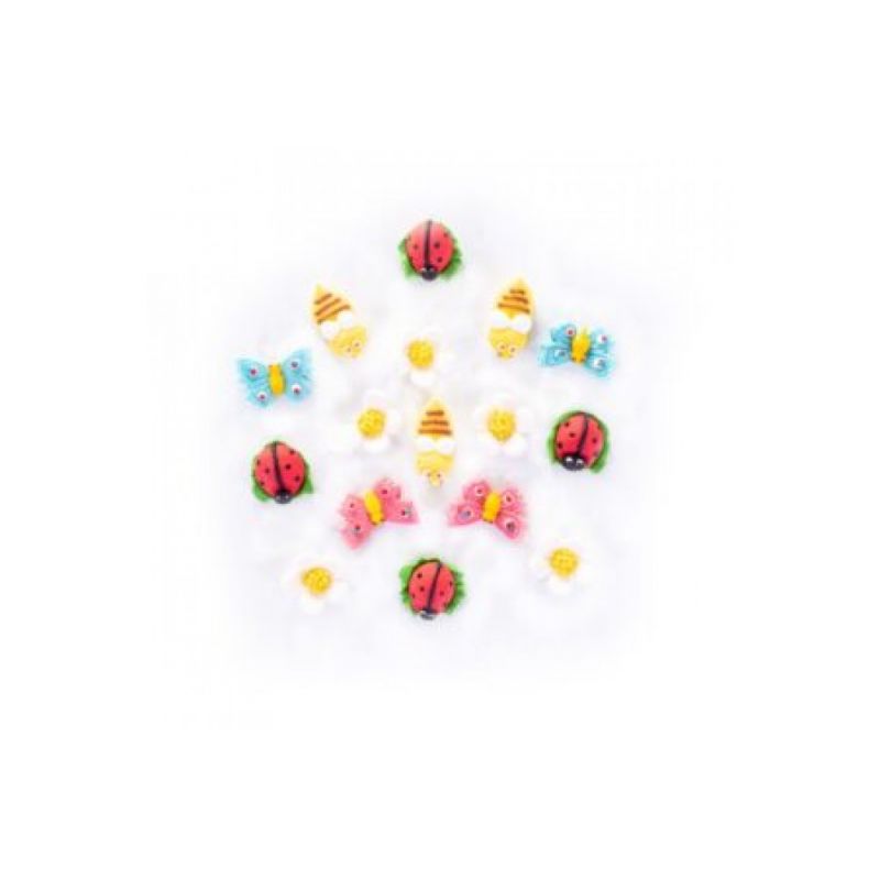 Puderzucker, getrocknetes Eiweiß, Konditorfett, Glycerin, Verdickungsmittel, Maisstärke, Säureregulator: Zitronensäure, Vanillearoma, Lebensmittelfarbstoff.