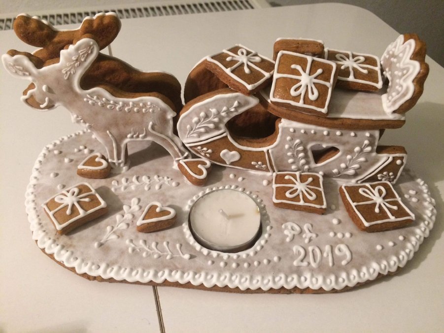 Royal-Icing für das Verzieren von Lebkuchen sogenanntes Königliches Icing zur Herstellung vieler Konditoreidekorationen sowie zum feinen Abschlussverzieren mit einer Spritztülle. Es ist auch geeignet für die Herstellung essbarer Spitze. Trockene Dekorationen können auf Wachspapier gelagert werden, nicht einfrieren. Befolgen Sie die empfohlene Zubereitungsanleitung des Zuckergusses; nach dem Aufschlagen sollte er feste Tupfen bilden. Wenn der Zuckerguss fest ist, gießen Sie einen Teelöffel Wasser nach und schlagen die Mischung erneut auf. Der fertige Royal Icing kann bis zu 5 Tage in luftdichter Verpackung bei Zimmertemperatur aufbewahrt werden; vor der Verwendung den Guss umrühren.