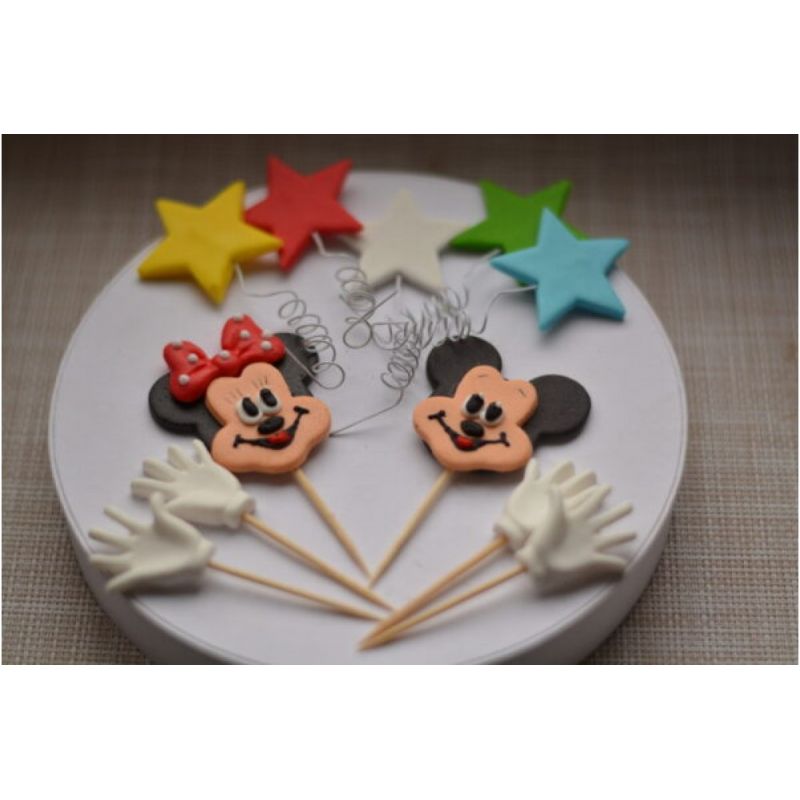 Zuckerdekoration für Kuchen Mickey & Minnie Set mit 2D-Dekorationsspießen.